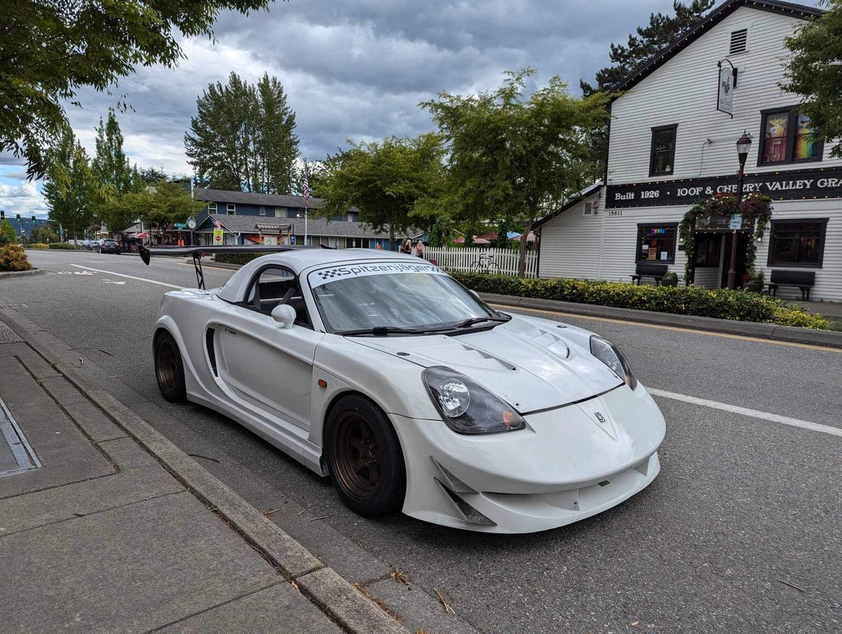 The Loofah Racing Uprights are the ONLY uprights that are chassis mounted and allow an OEM bumper without any interference! These also work with most aftermarket bumper bars on the market! We added slots for some adjustability with wing choices, you just need to provide an adapter for your choice of wing. This will directly bolt to a 69" NRG Wing or 9-Lives Wing! The wing will sit almost flush with the top of the hardtop for the most ideal placement on the MR2 Spyder!