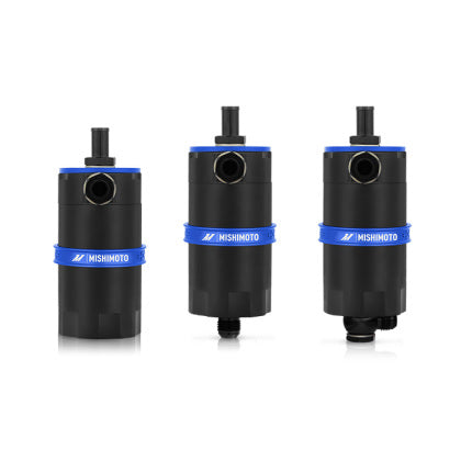 Mishimoto is proud to announce the release of our Baffled Oil Catch Can.With over a year of research and development time, Mishimoto has created the most effective oil catch can on the market.The Mishimoto Baffled Oil Catch can was designed to separate oil particles from the PCV air that would normally have just been routed back to your intake.Custom grooves in the catch can's inlet turbulates the air longer and ensures all the oil sinks to the bottom of the can, leaving nothing but clean air to pass through the 40 micron bronze filter to the intake.An internal baffle keeps the collected oil from splashing around under race conditions.The 100-percent billet, 6061 aluminum can accepts inAN fittings at the intlet, outlet, and drain area allowing over 25 possible configurations.For maximum fitment options, the top cog mounting setup allows the can to be mounted from multiple angles.To make maintenance easy, the drain plug can be removed to allow for inAN return to the oil pain.The can is also 100-percent washable, unlike many other cans that require you to replace your filtration system.The Mishimoto Baffled Oil Catch Can is available in a variety of colors as well, so it will be sure to match your style and taste!