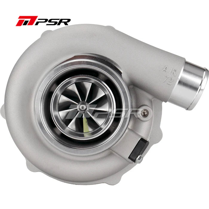 The Dual Ceramic ball bearing system of the PSR 6255G (G30-900) turbocharger maximizes response time and durability by minimizing shaft motion. Equipped with a 9 Blade G-Aero Billet Compressor Wheel featuring Extended Tapered Tip Technology, this turbocharger also boasts a 9 Blade G-Aero Inconel 713c Turbine Wheel and an Anti-Surge ported-shroud compressor inlet. The cover is integrated with a speed sensor port, and the turbocharger is internally wastegated and features a Billet Actuator with a working pressure of 12 psi. Rated at 900hp at the flywheel!