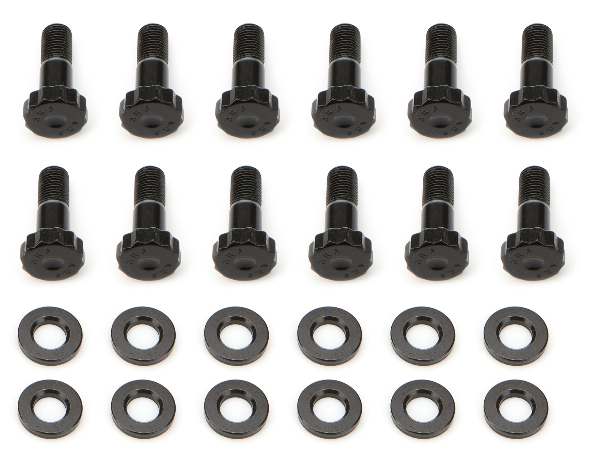 Ring Gear Bolt Kit - 3/8-24 in Right Hand Thread - 1.125 in Long - 12 Point Head - Steel - Black Oxide - Winters Quick Change - Set of 12